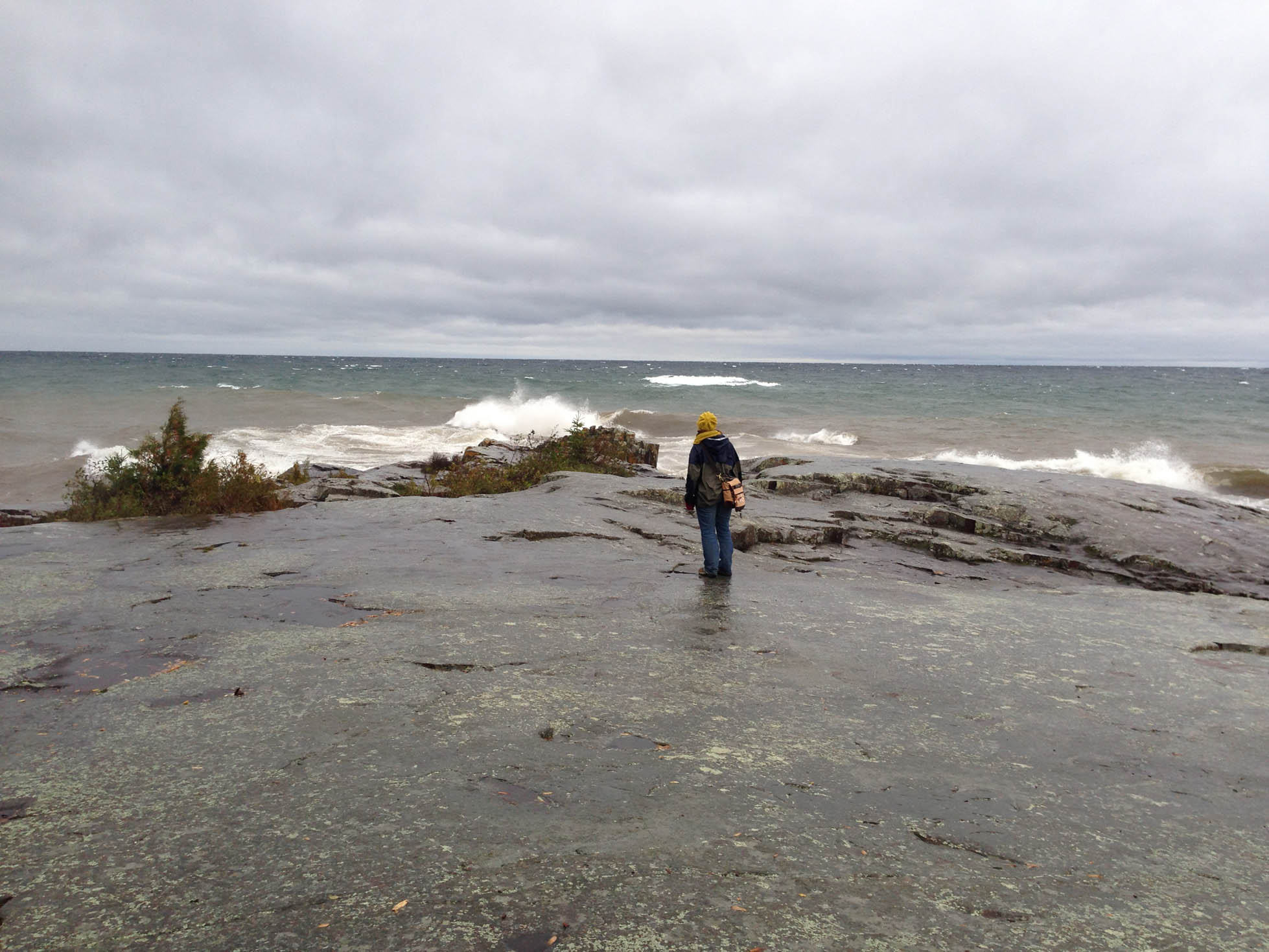 Remember my goal to finish those Raven mittens? Well I did it! Late Saturday evening, sitting next to a fire, tucked away safely in a cabin next to a stormy Lake Superior. Which was throwing 5ft (and much larger down the coast) waves against the rocks for three days straight. This lake never fails to amaze me with it’s power and beauty. Me and my partner (the new owner of the mittens) were there for the weekend to celebrate our anniversary. We spent an exciting Saturday up in Grand Marais, MN watching huge waves crash against the shore, climbing over rocks and taking in the late fall colors. We where also rained on a little. And our nights where spent lounging next to a fire with cheap wine, wondering if a cereal killer was watching us from the dark woods and watching bad cable TV.