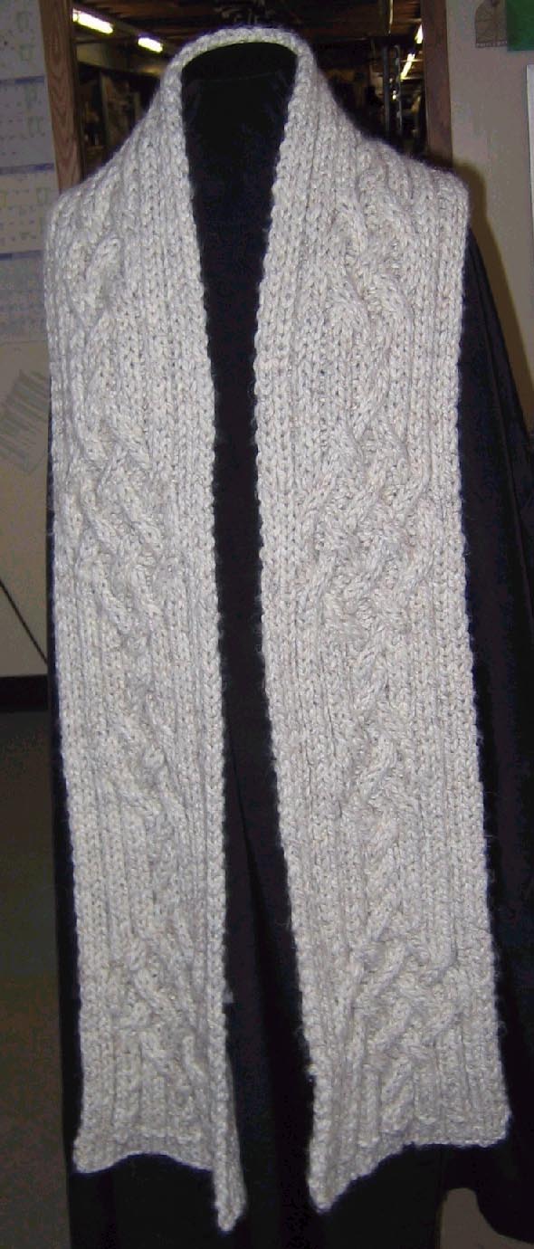 I picked it back upon a whim almost a year after I had started and something just clicked. It came so much easier suddenly and felt natural. I realized then without having thought about it much I had switched to german knitting. And it was working for me! I turned out 3 scarfs in time for the holidays! I gave all 3 away, but managed some bad photo’s before they left me. The red one, in Homespun taught me not to knit so tight or the yarn would bunch, the beige one I learned cables, and the last one was my first and one of the last engagements with fun-fur.