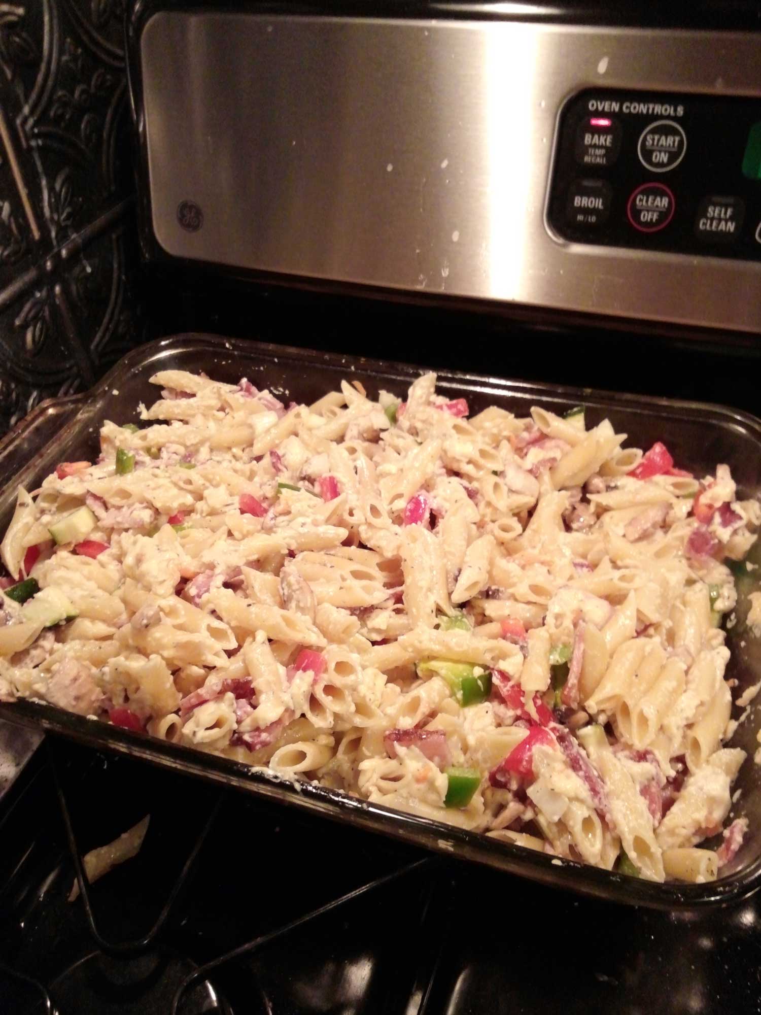 My turn to cook tonight, easy meal, but not super healthy as it contains at least half a block of cream cheese, quarter cup of heavy cream and probably close to 4 cups of cheese, but it also had a bunch of veggies in it, so we’ll just ignore all that.
