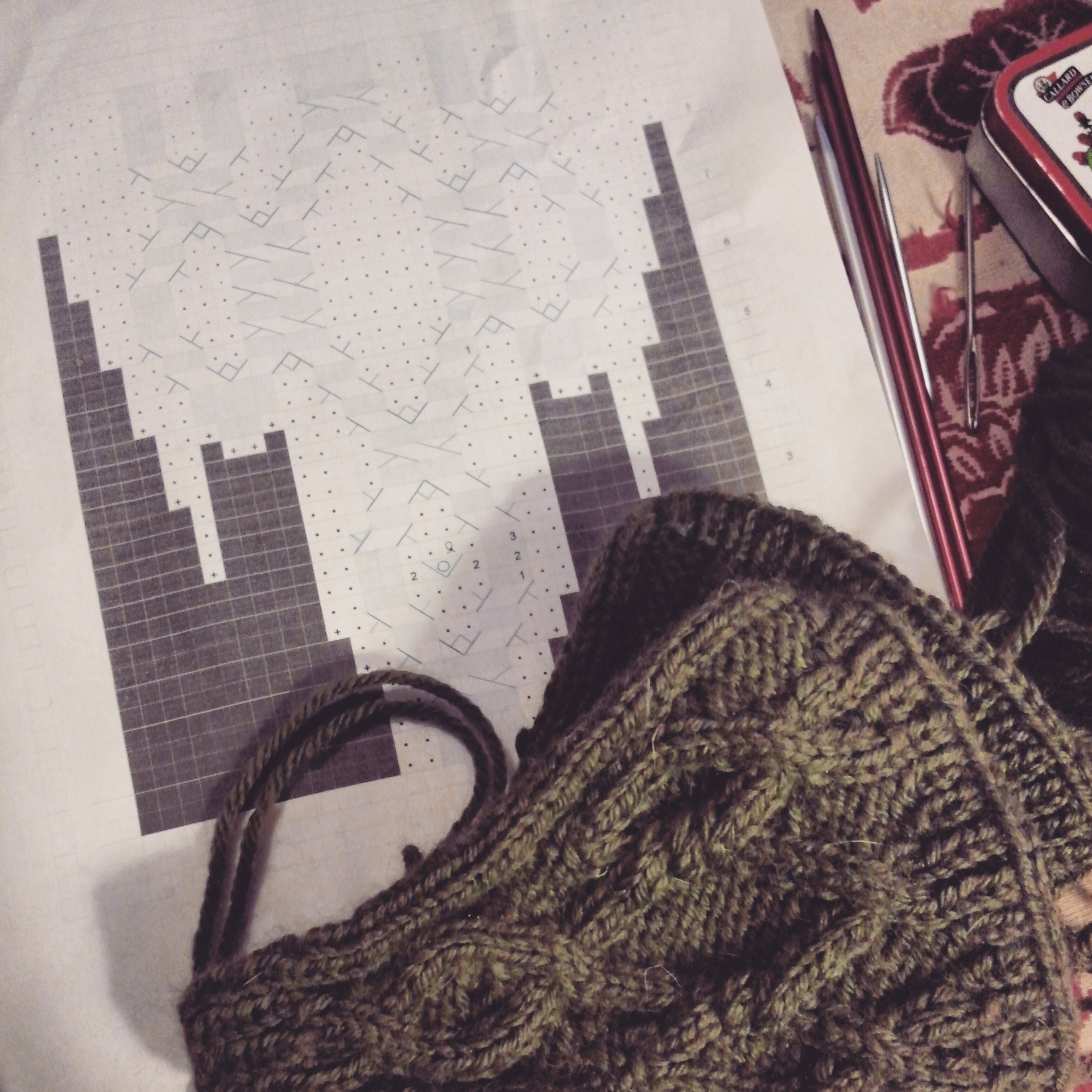 I finished knitting the 2nd ear warmer and checked my graph for the cable part too.